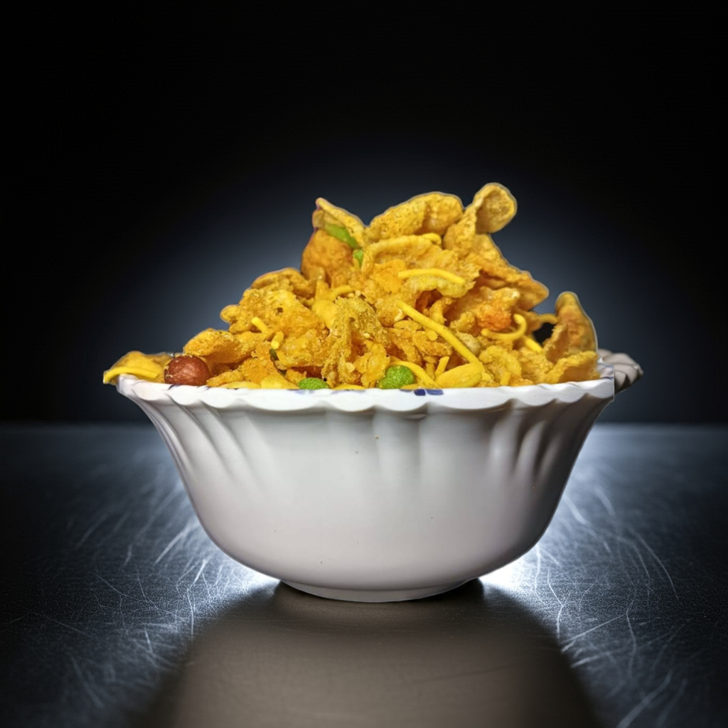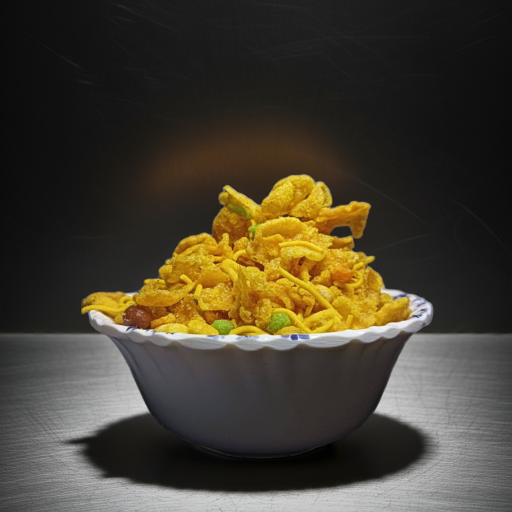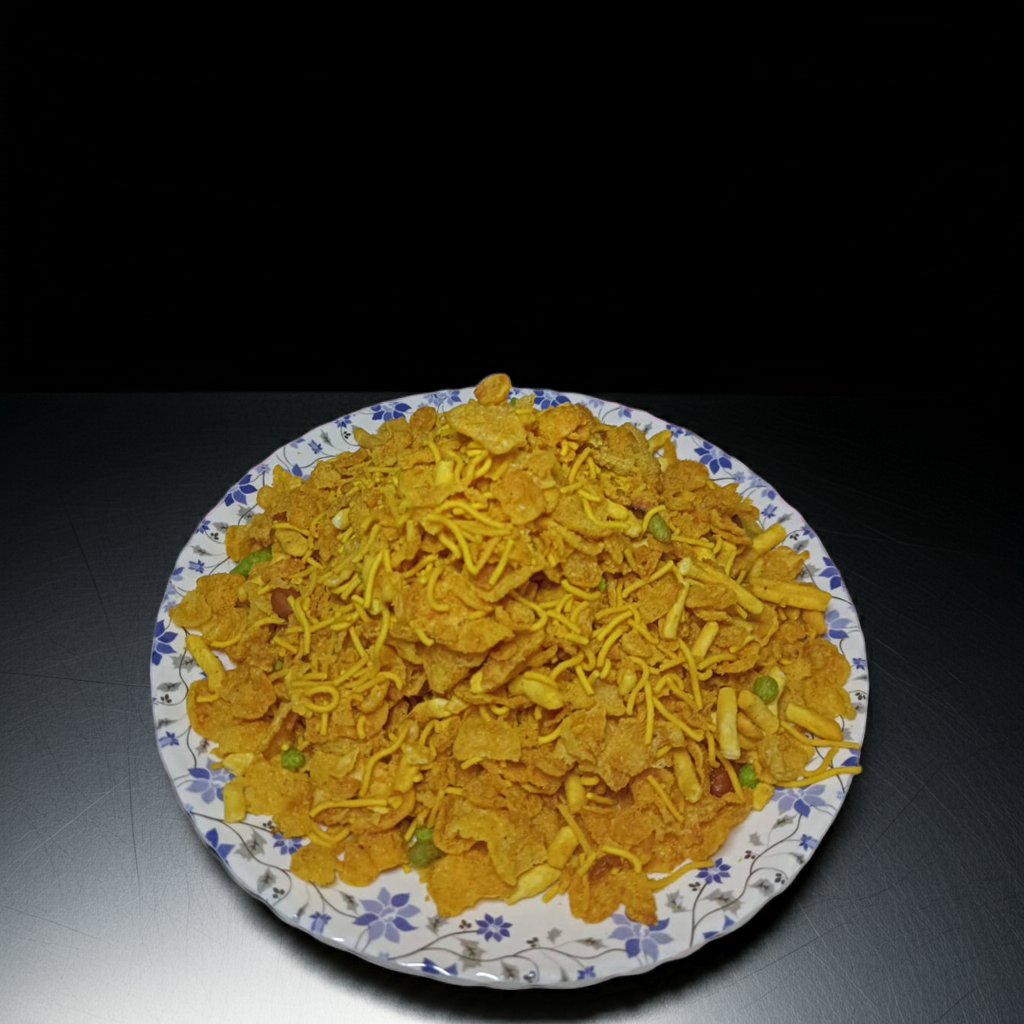 ✨ Navratan Chivda – A delightful blend of flavors and textures! 🥳 This crunchy snack combines crispy cornflakes 🌽, spicy sev 🌶️, roasted peanuts 🥜, and a medley of dried ingredients for a burst of taste in every bite! Perfect for tea time ☕ or festive celebrations 🎉, this savory mix is sure to satisfy your cravings while leaving you wanting more! 💛 Indulge in this wholesome, flavorful snack today!